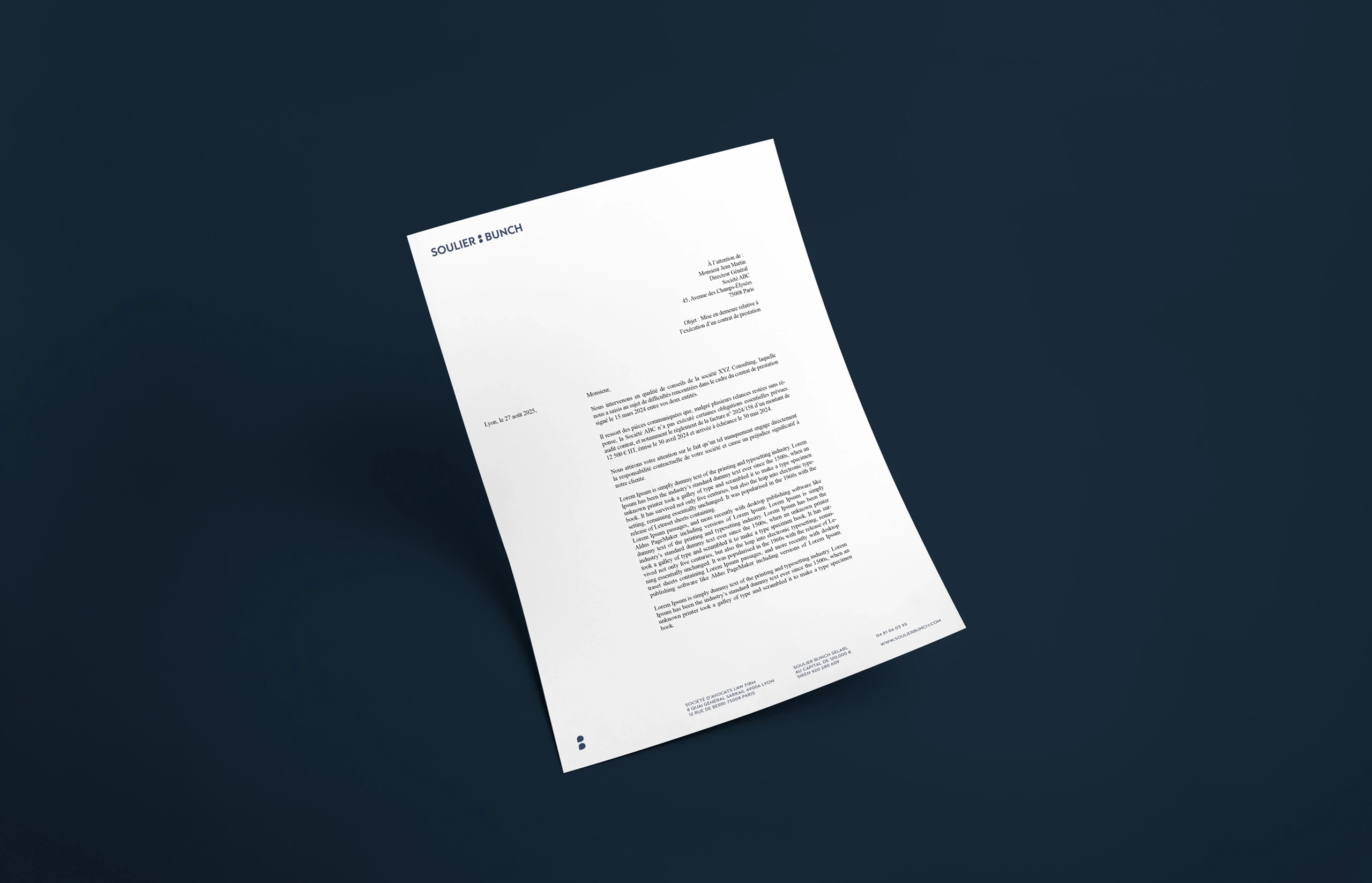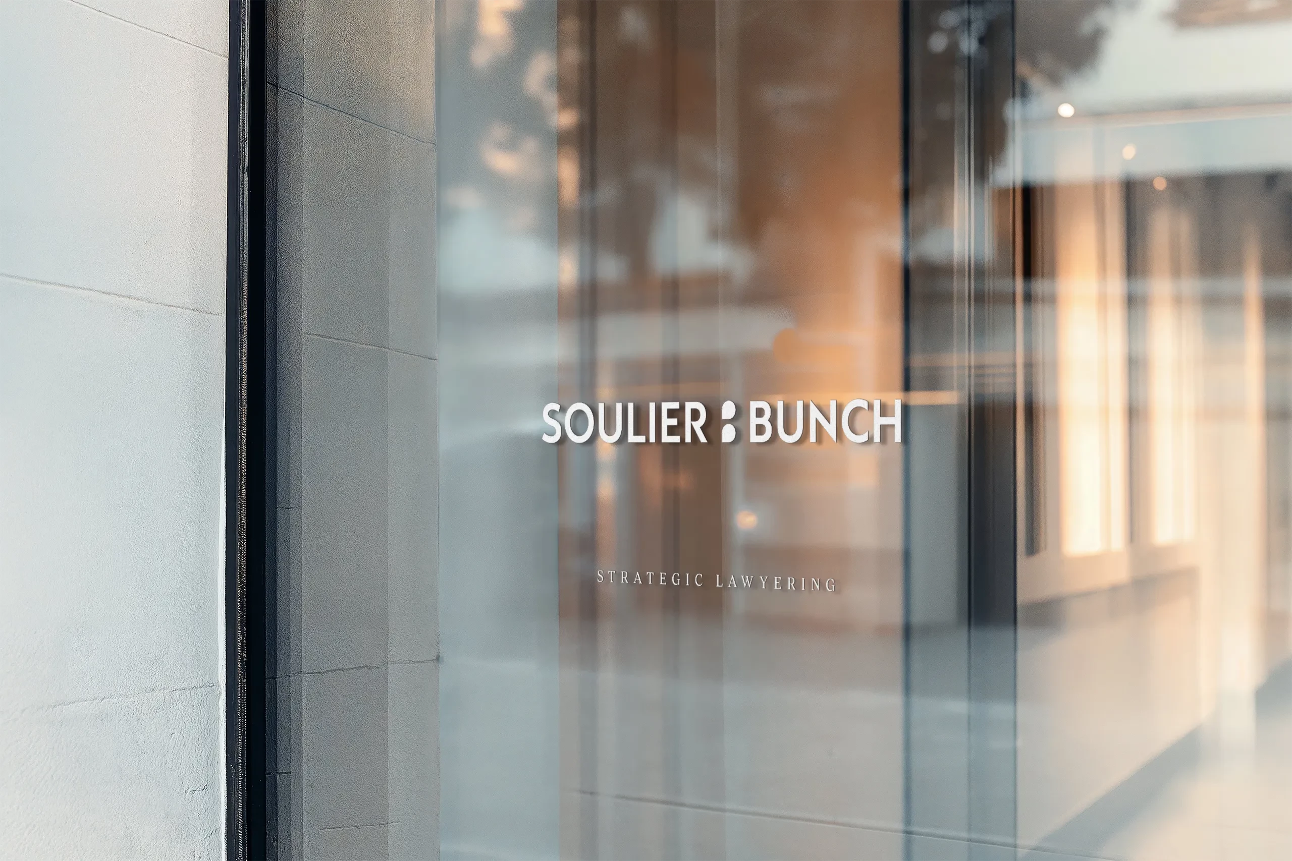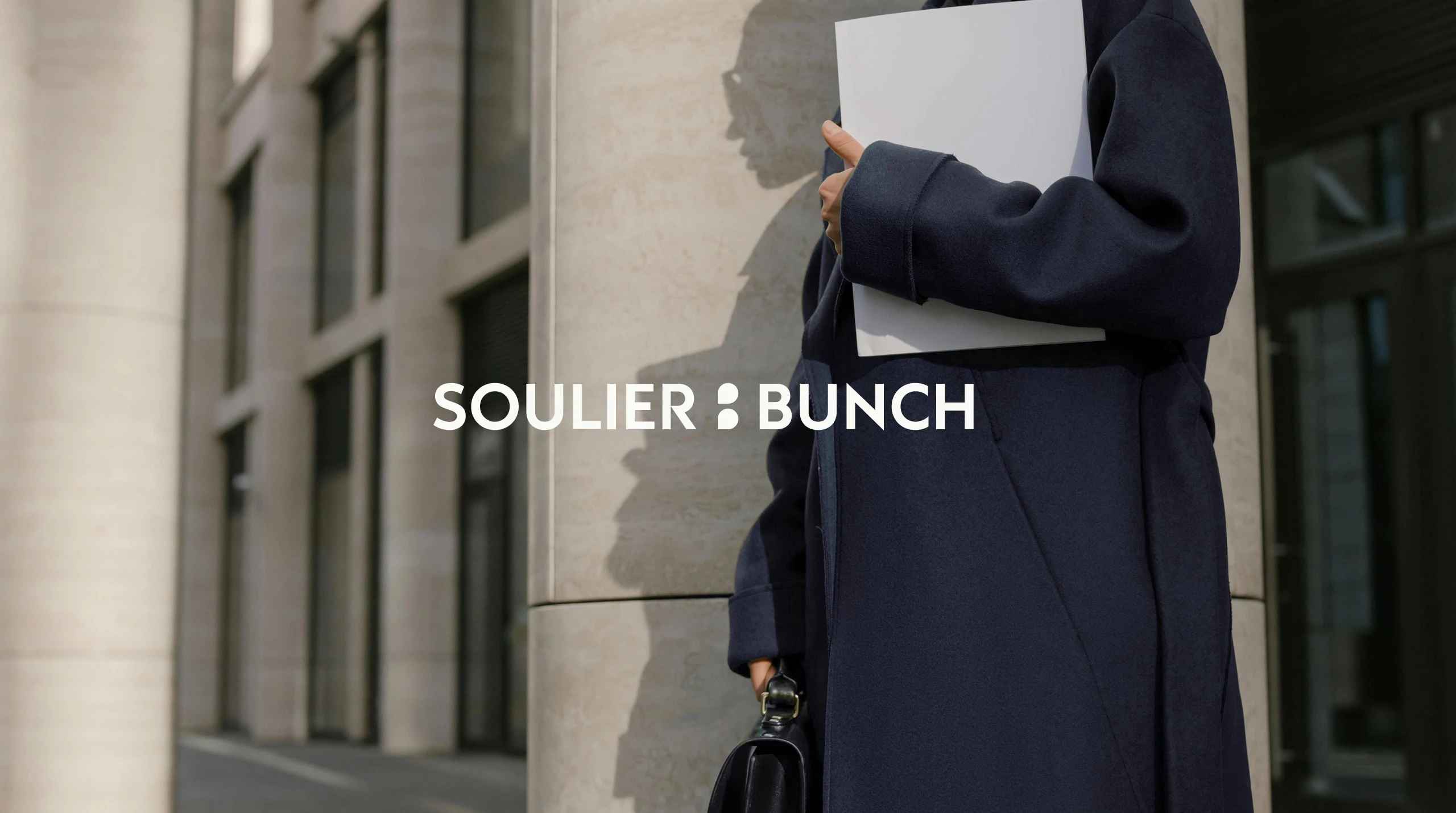 L’identité visuelle de Soulier Bunch illustre la fusion de deux cabinets lyonnais, dont Soulier, acteur historique du barreau. Pour symboliser cette union, un élément graphique central a été conservé et mis en valeur : il incarne la convergence des expertises et la naissance d’une structure unique, forte de son héritage et tournée vers l’avenir.